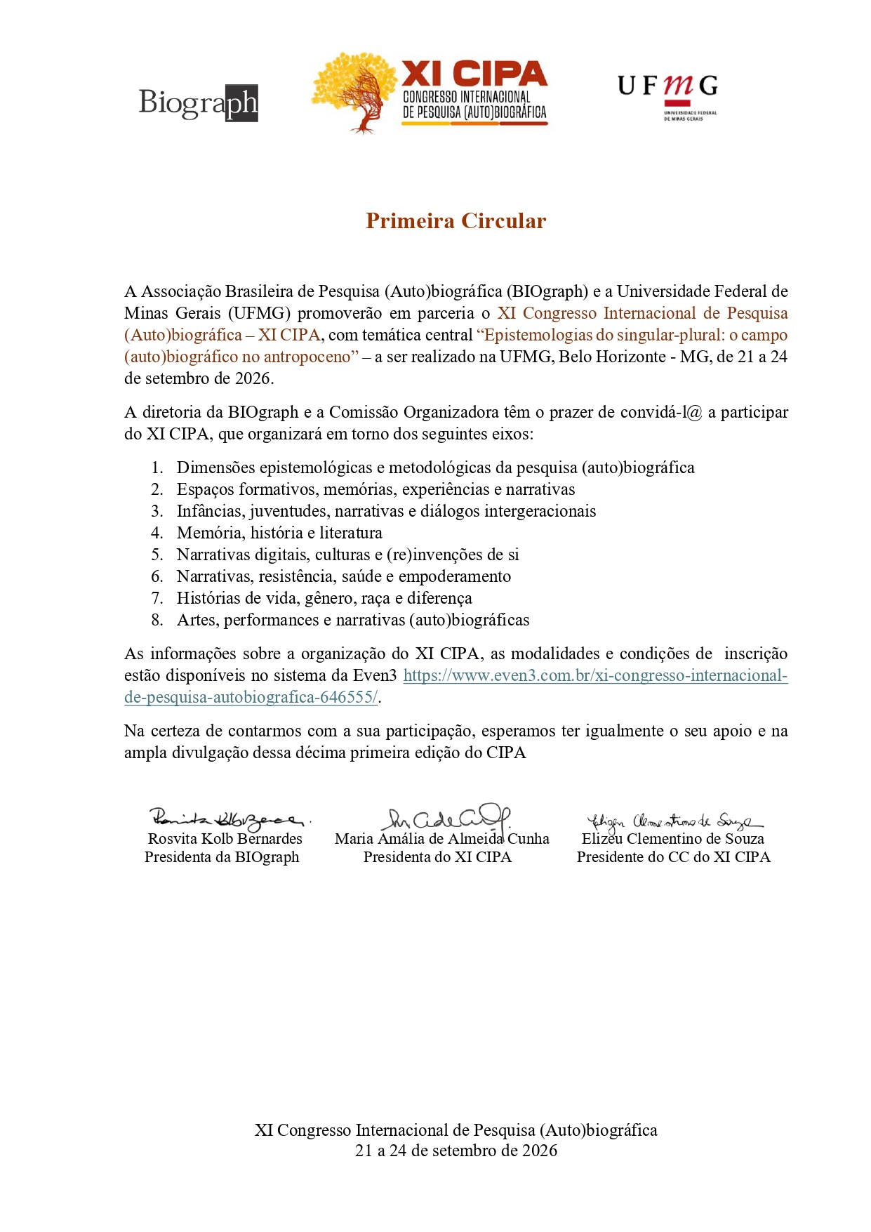 XI CIPA: Congresso Internacional de Pesquisa (Auto)biográfica 2026